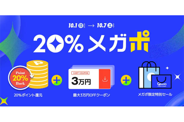 Qoo10、メガポイント祭「20%メガポ」開催…回数制...