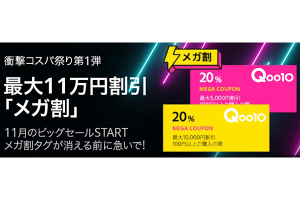 最大で11万円を割引!「Qoo10コスパ祭り」再び -
