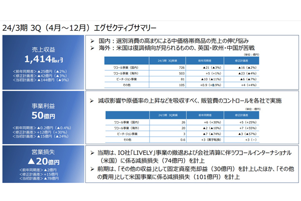 ワコール3Q 39億円の赤字…ECは好調に推移 -