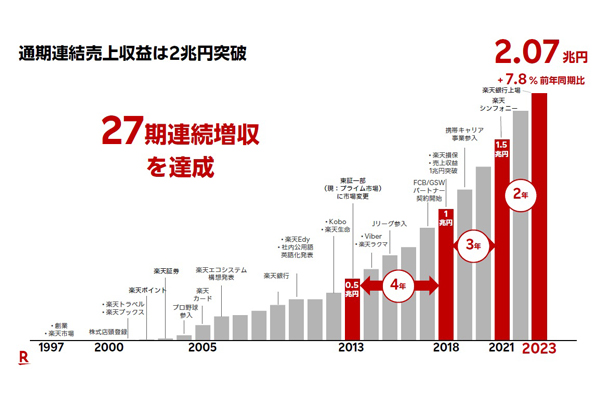 楽天グループ、連結売上が2兆円突破…「楽天市場」流通総... -