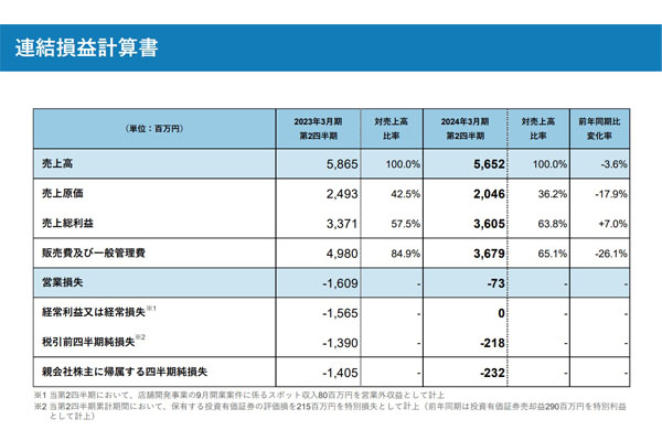 マクアケ9月期、リ・オープニングの影響で売上高9.4%減 -