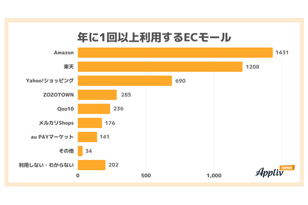 ECモールの利用、「Amazon」「楽天」が全体の6割に
