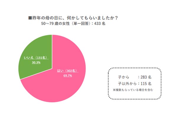 50~79歳の女性の7割「母の日に何かしてもらっている」 -