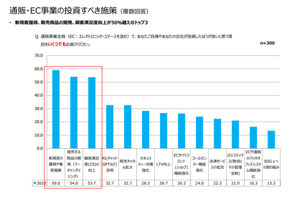 通販会社が投資したい施策、1位は「新規獲得・集客」…「... -