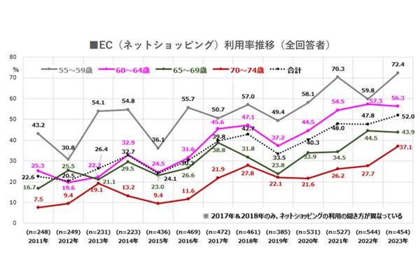 シニア女性のネットショッピング利用率が過去最高の52.0%に -