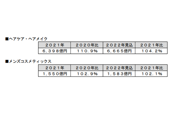 22年メンズコスメ市場、2.1%増の1583億円に…中... -