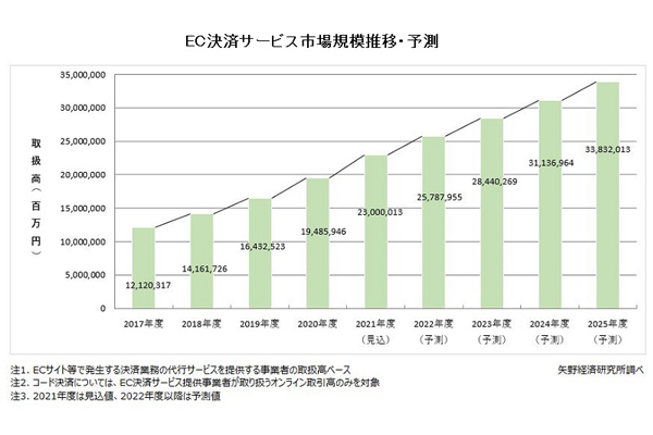 21年国内EC決済サービス市場、18%増の23兆円…2... -