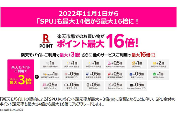 ポイント還元率が大幅アップ、楽天モバイル利用でSPUが... -
