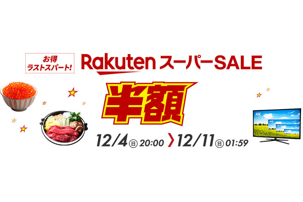 「楽天スーパーSALE」開催、半額以下の「超目玉アイテ... -