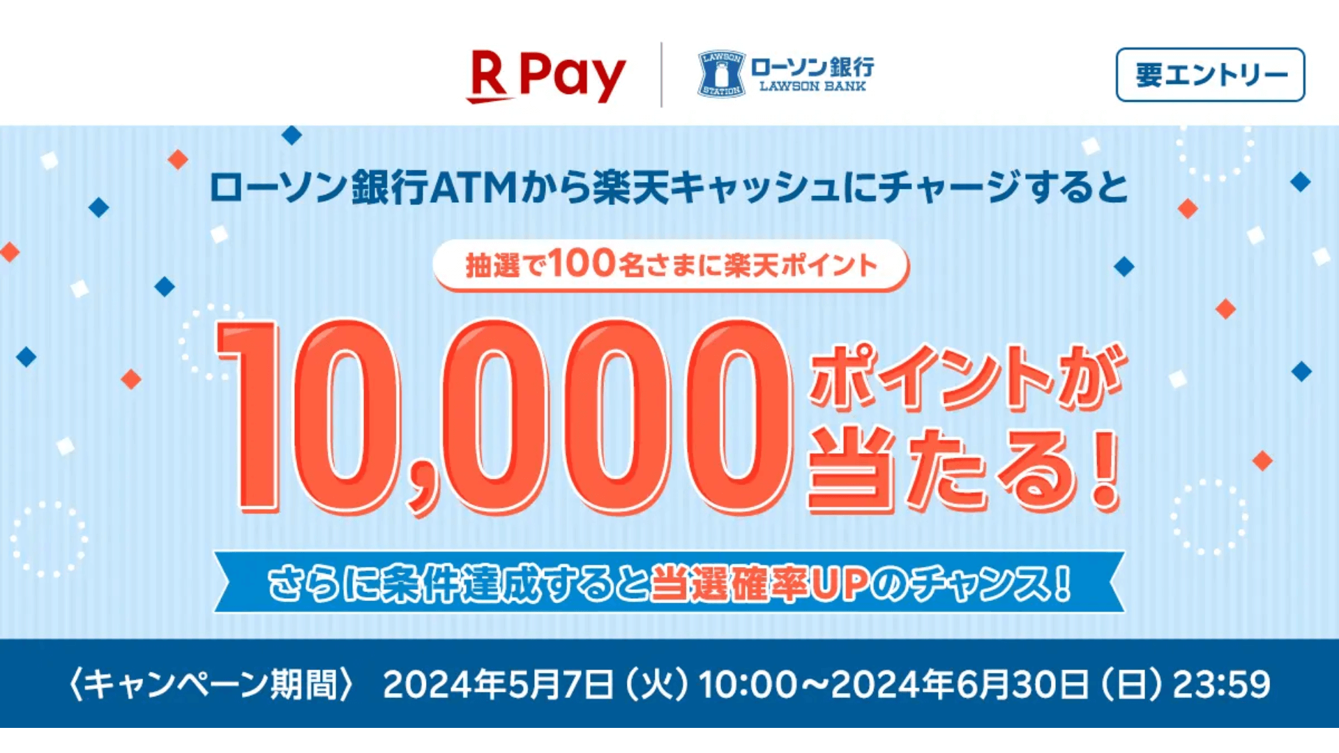 楽天ペイ、ローソン銀行ATMでチャージすると1万ポイン... -