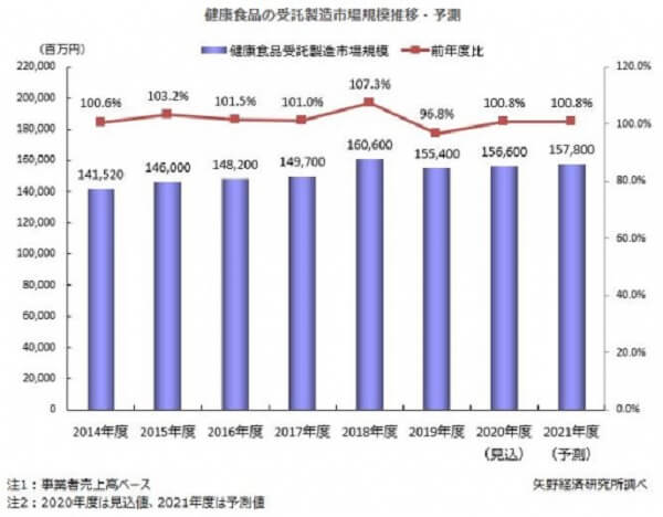 20年健康食品受託製造市場、0.8%増の1566億円…... -