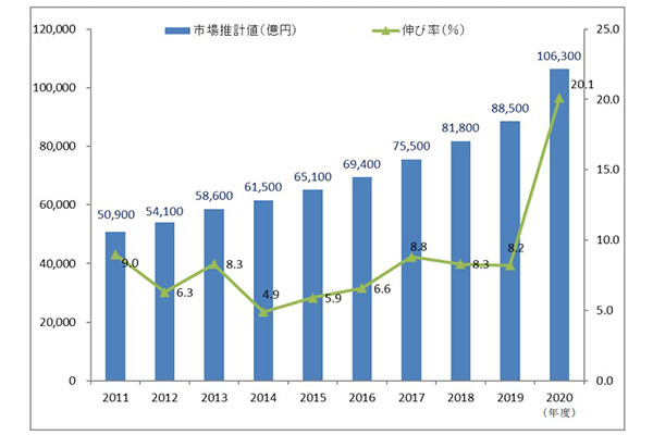 20年度通販市場、20%増の10兆6300億円に…過去... -