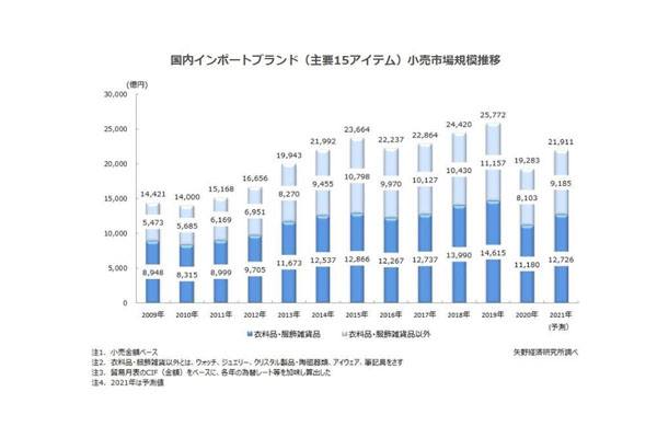 20年インポートブランド小売市場、コロナ禍で25.2%... -