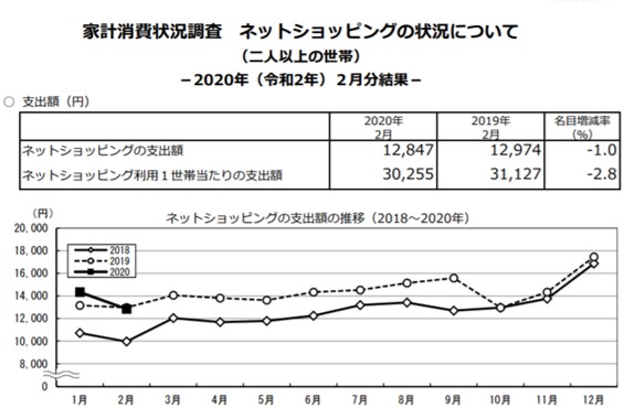 2月のネット通販支出額は1%減、新型コロナで旅行関係費... -