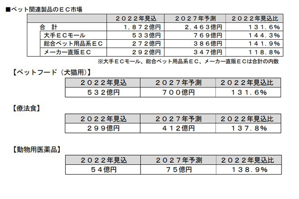 ペット関連製品のEC市場が拡大、22年は1872億円の... -