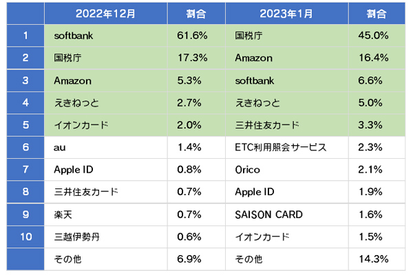 1月のフィッシング詐欺、「ECサイト」の構成比が急増 -