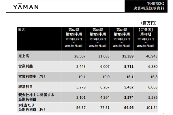 ヤーマン3Qは増収減益、売上高は過去最高…中国のECイ... -