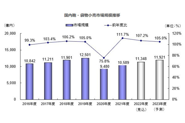22年度鞄・袋物市場、7.2%増の1兆1348億円の見... -