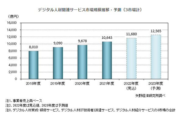デジタル人材関連サービス市場、21年は10%増の1兆6... -