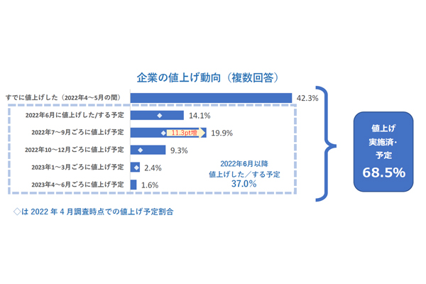 値上げラッシュが継続、企業の7割が「6月以降に値上げを... -