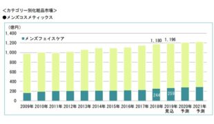 19年メンズコスメ市場、1.4%増の1196億円へ -