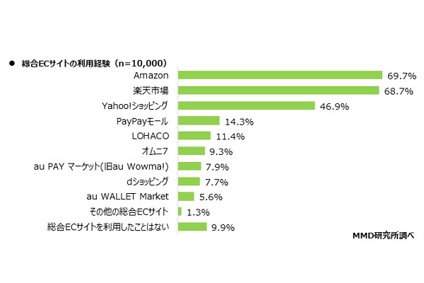 コロナ禍の総合EC利用、トップは僅差でAmazon…メ... -