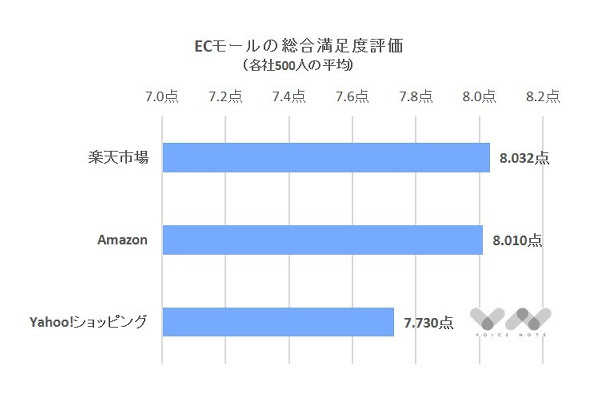 ECモール満足度、1位楽天市場・2位Amazon・3位ヤフー -