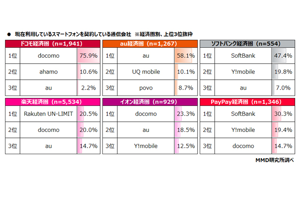 ドコモ・au・SB・楽天など6経済圏、同一圏内サービス... -