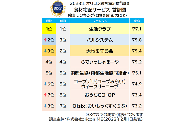 『食材宅配サービス』顧客満足度、首都圏1位は「生活クラブ」 -