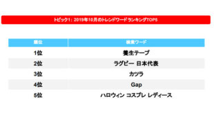 10月メルカリトレンド、1位「養生テープ」・2位「ラグビー」 -
