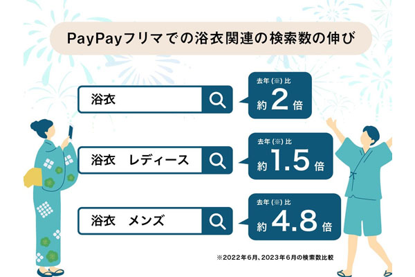 PayPayフリマ夏トレンド、前年比で浴衣の検索数が2... -