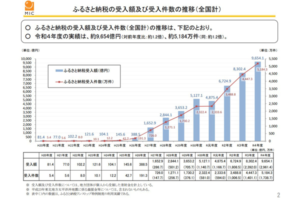22年度ふるさと納税、受入額・受入件数とも1.2倍に…... -