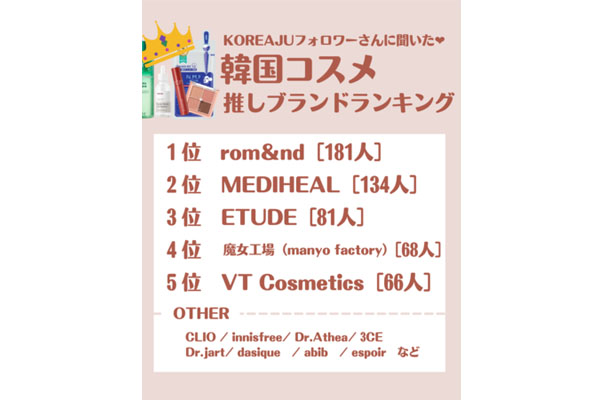 好きな韓国コスメブランドランク、1位は「ロムアンド」 -