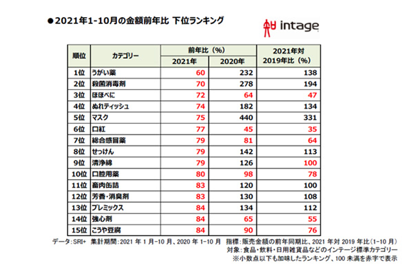 21年の販売苦戦ランキング、1位は40%減で『うがい薬』 -