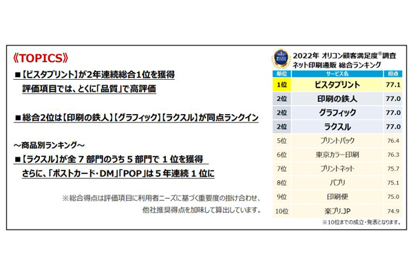 満足度の高いネット印刷通販、「ビスタプリント」が2年連... -
