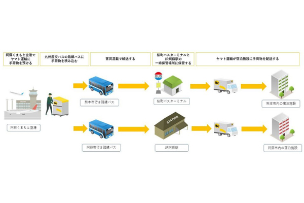 観光客の手荷物を当日配送、九産バスとヤマト運輸が客貨混...
