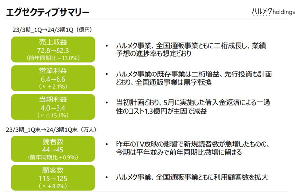 ハルメク1Qは売上13%増、ハルメク・全国通販事業とも... -