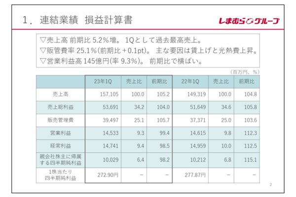 しまむら1Qは増収減益、売上高は過去最高に…ECは好調 -