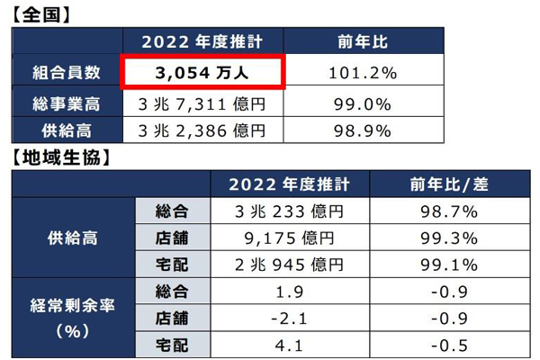 日本生協、22年度売上は微減の3兆233億円…エシカル... -