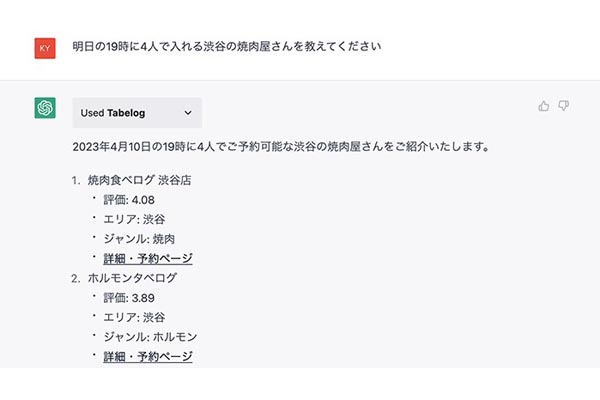 ChatGPTで予約できる飲食店を検索、食べログが対応... -