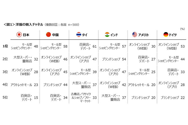 世界各国の洋服の購入先、ECは米国・ドイツで1位…日本は3位 -