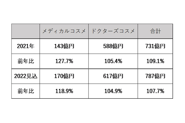 メディカル・ドクターズコスメ市場、22年は7.7%増の... -