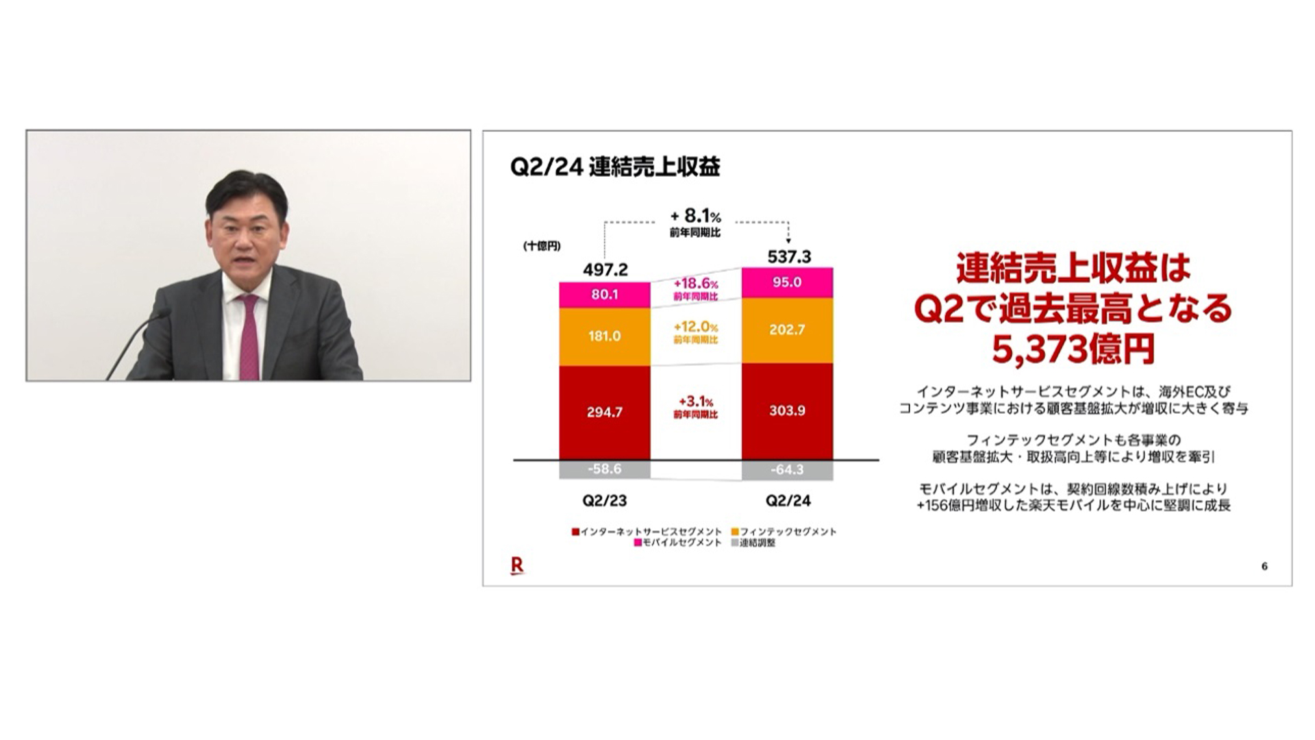 楽天グループ、Q2売上収益が過去最高の5373億円 -