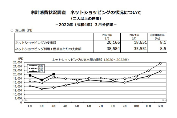 ネット通販世帯支出額、3月は8%増の2万166円…旅行... -
