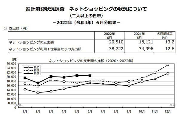 ネット通販世帯支出額、13%増の2万510円…旅行費が... -
