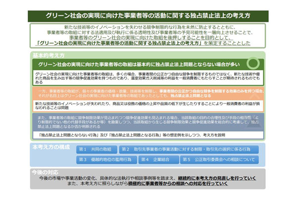 公取委、グリーン社会に関する事業活動で「独禁法上の考え... -