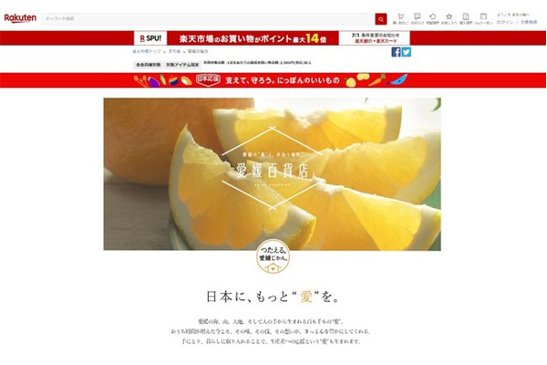 愛媛県、京東商城の楽天旗艦店に特設ページ「愛媛特産館」を開設