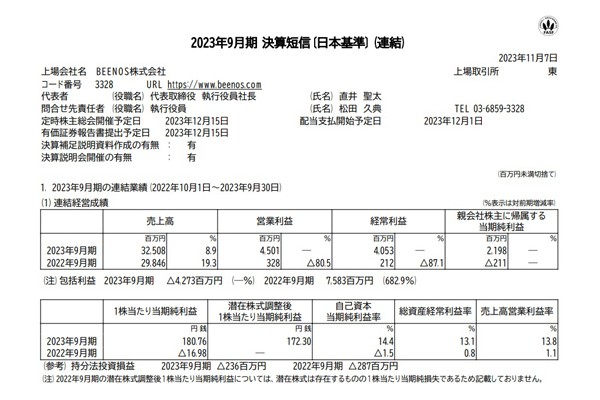 BEENOS、9月期は黒字に転換…Eコマース事業の売上... -