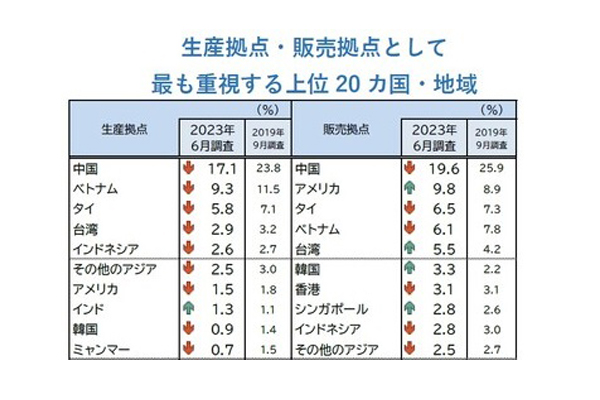 海外の生産・販売拠点、重要度は「中国」がともにトップも... -