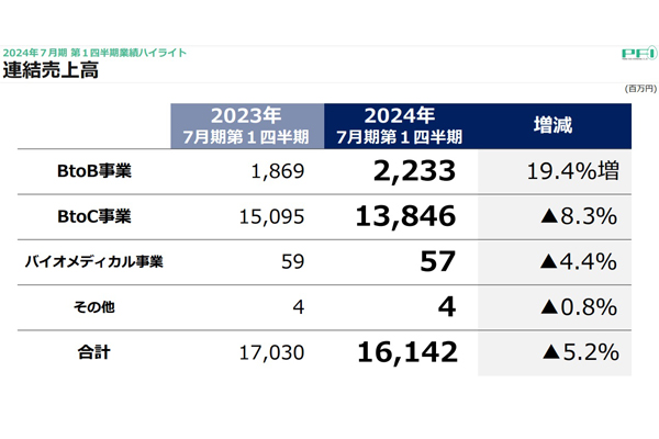 ファーマフーズ1Qは売上減…通販のBtoC事業が8.3%減 -